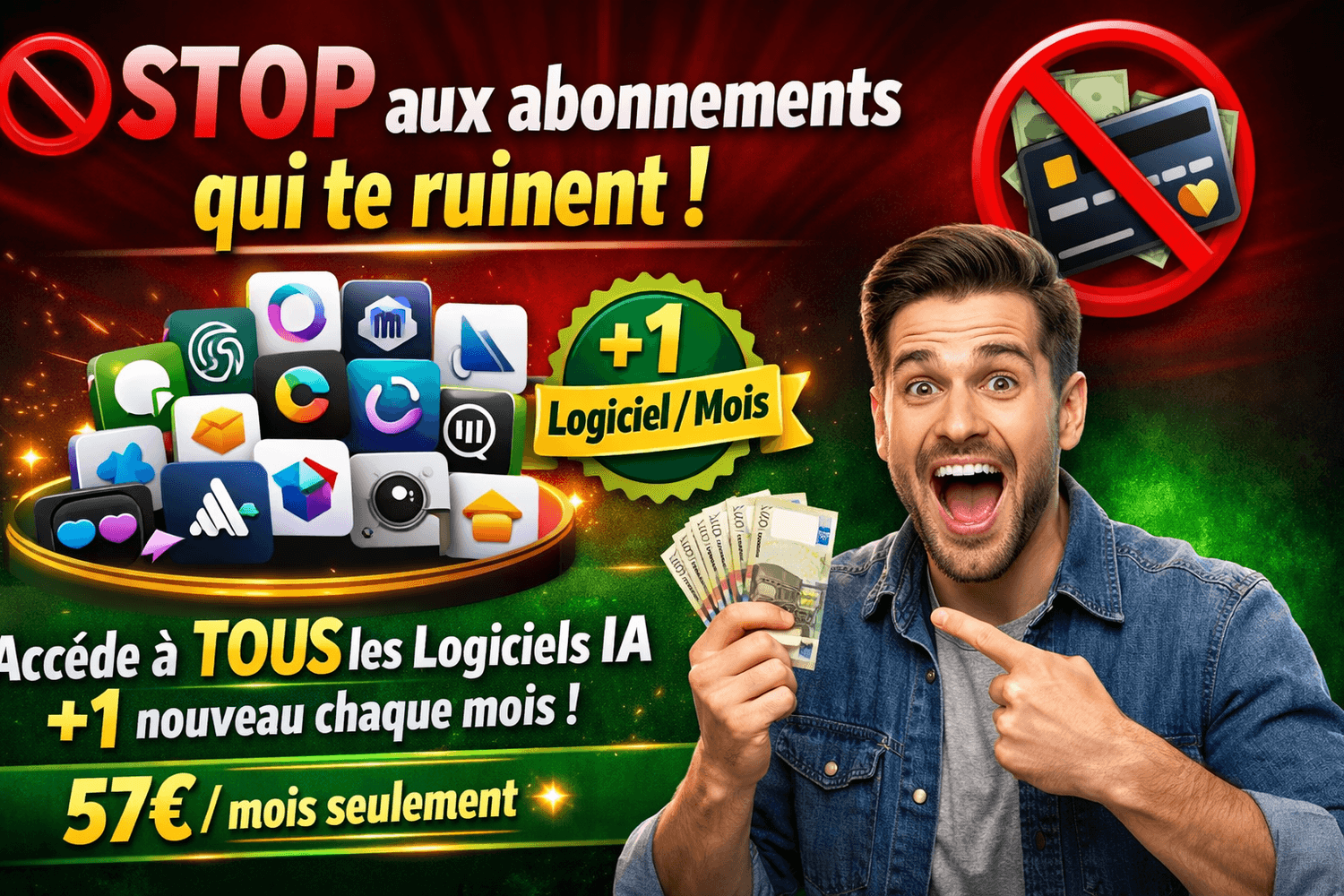 Accédez à TOUS les Logiciels et outils IA dont vous avez besoin + 1 Nouveau Logiciel IA chaque Mois...