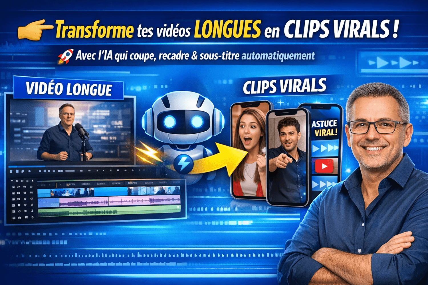 En Un Clic : Transforme chaque Longue Vidéo en plusieurs petits Clips vidéo Viraux pour tes Réseaux Sociaux grâce à l'IA ...et Explose Tes Résultats